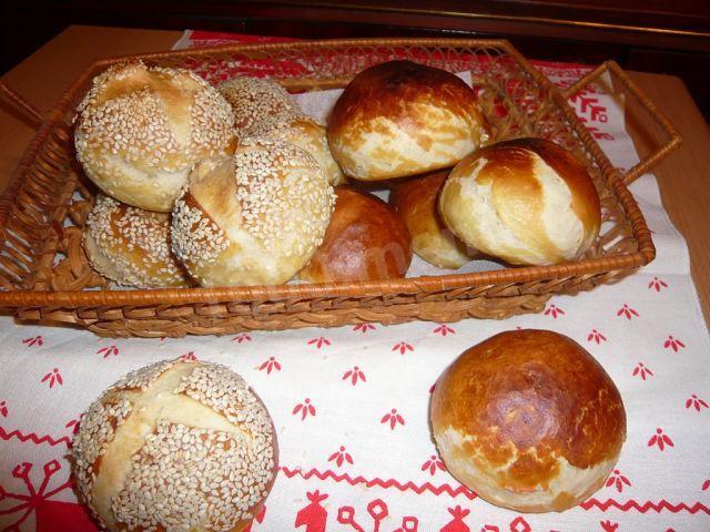 В широкой кастрюле закипятить воду и аккуратно всыпать соду....(Осторожно будет сильная реакция) Брать по 1 булочке и погружать в слабо кипящий раствор на 5 секунд... вынимая, шумовку (низ шумовки вместе с булочкой) промокнуть бумажным полотенцем.
