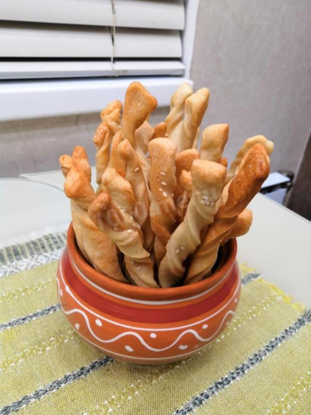 Пробовала делать эти палочки в сладком варианте (вместо 1 ч.л. соли: щепотка соли, 1 ст.л. сахара и сверху посыпала сахаром с корицей) - похожи на хрустящее печенье, тоже интересный вкус!