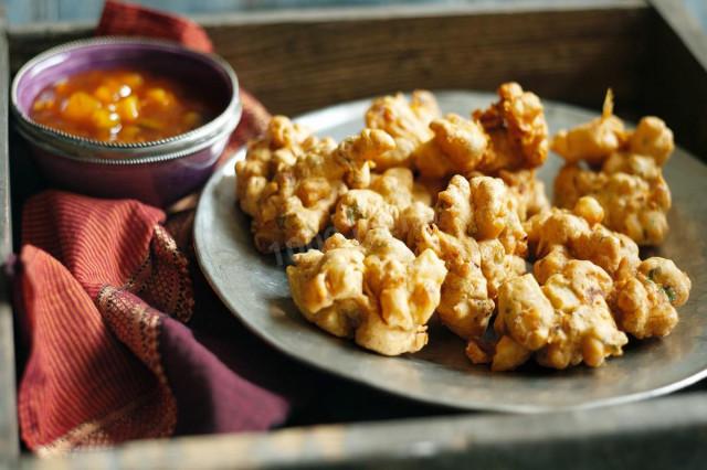 Эта хрустящие кусочки теста никого не оставят равнодушным! Индийские пакоры овощные относятся к традиционным индийским закускам, но могут подаваться и в качестве основного блюда. Они представляют собой кусочки измельченных овощей в кляре, обжаренных во фритюре. Как правило, это полностью вегетарианское блюдо, основной вкус которому придает различное сочетание индийских специй типа гарам масала с острым перцем чили.