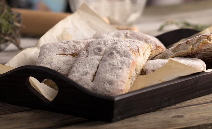 9. Через 10 минут после начала запекания, сбрызнуть чиабатту небольшим количеством воды - это позволит образоваться хрустящей корочке.