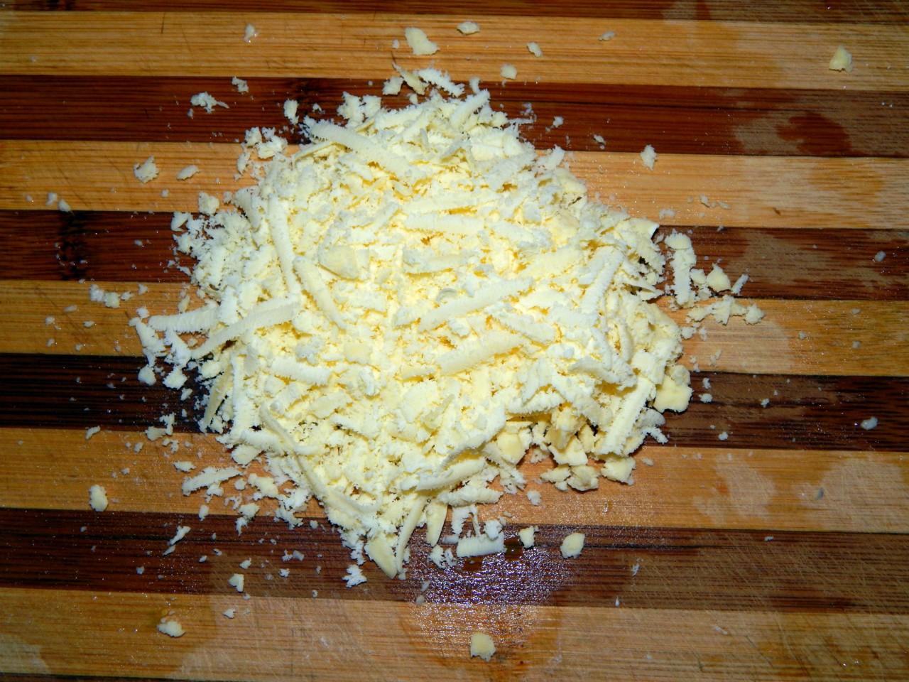 Твердый сыр (можно использовать сыр любого сорта в зависимости от вкуса и наличия) натираем на терке.