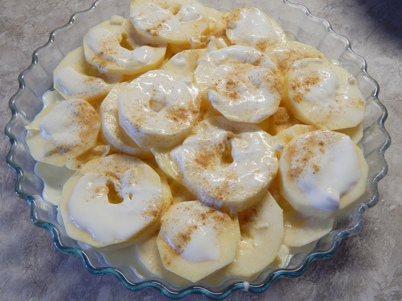 Форму для запекания смазываем растительным маслом. Выкладываем на дно кружочки кабачка в один слой или в небольшой нахлест. Можно выложить кабачок и в несколько слоев, но тогда каждый слой нужно смазать йогуртом и сдобрить специями.
