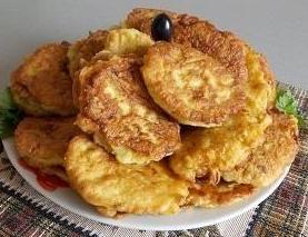 Итак, возьмите кабачки, лучше совсем молодые, если их нет под рукой – постарее, тогда с них нужно будет счистить кожицу и удалить семена. Натрите подготовленные кабачки на крупной терке, добавьте в них яйца, соль и муку, замесите тесто. Натрите сыр и смешайте его с раздавленным чесноком. Можно сыр смешать с кабачковым тестом, а можно при жарке чередовать – ложка кабачков, сверху ложка сыра, потом еще ложка кабачков. Только сыр надо класть чайной ложкой, а кабачки – столовой. Вкусны оба способа, попробуйте сами. Подавать на стол со сметаной, мои, правда, придумали совершенно дикий рецепт соуса, но говорят так тоже вкусно. Они берут майонез, смешивают его с кетчупом и сметаной, туда и макают.