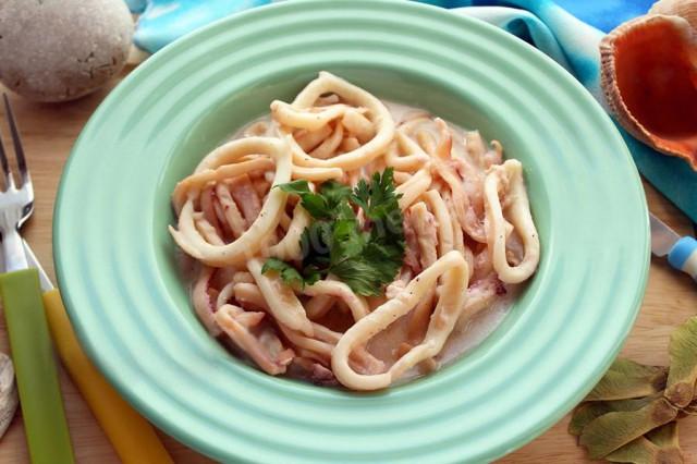 Кальмары в соусе с петрушкой на сливках со специями