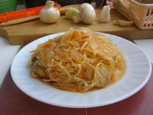 Простейший рецепт сытного блюда – будет вкусно и полезно. Капуста с грибами – это и самостоятельное блюдо, и гарнир к мясу или рыбе, и даже как холодная или холодная закуска. Прекрасная альтернатива мясным блюдам в посту. Ему порадуются все, кто любит с пользой питаться или держать пост. Если не добавлять масло, блюдо будет намного полезнее и не так опасно для фигуры. Уместна и в каждодневном меню, и в праздничном (даже в постные дни).