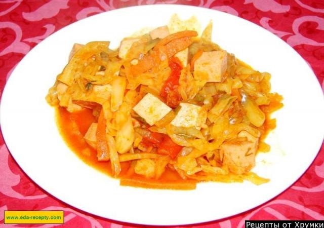 Это блюдо просто приготовить, но какой замечательный вкус! Как сготовить полноценную мясную еду, если мяса в холодильнике нет? Внимательно осмотрите свой холодильник. Возможно, что там кроме овощей спрятался где-то небольшой кусочек вареной колбасы, а уж все остальное - дело фантазии и ловкости. Тем более, что даже существует кулинарный рецепт тушеной капусты с колбасой.