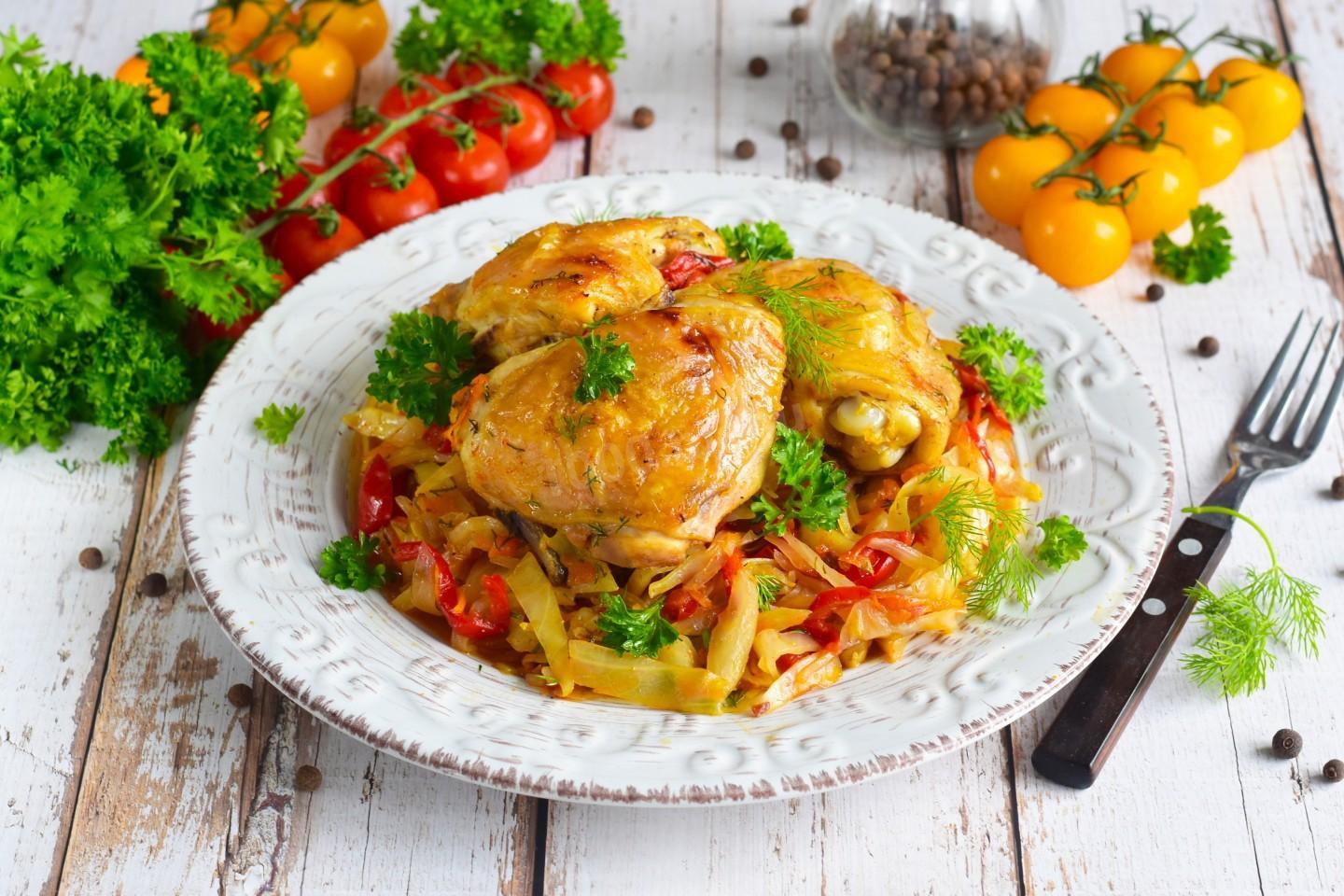 Как сделать капусту с курицей в рукаве в духовке? Очень просто и быстро. Для начала подготовьте все необходимые ингредиенты по списку. Части курицы можете брать любые - бедра, голени грудки. Выбирайте мясо по своему вкусу. У меня бедрышки. Курицу можете заменить на индейку или другое мясо.