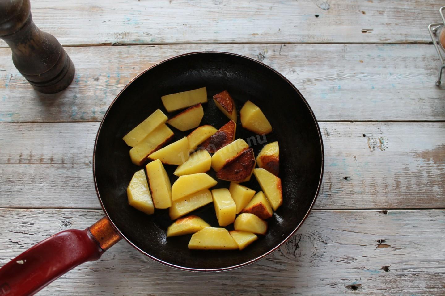 Долейте немного воды и под крышкой доведеите до мягкости картошки. Вода при этом практически исчезнет: частью выпарится, частью впитается.