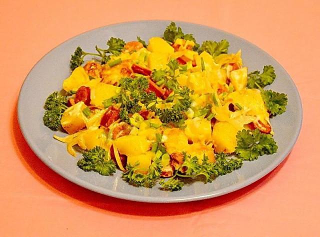 Вариант быстрого, горячего, сытного и аппетитного ужина для всей семьи. Такая еда прекрасно подойдёт на ужин, когда ничего более сложного Вы уже не успеваете приготовить, а вся семья проголодалась. Расхваливать такое блюдо нет особого смысла, так как вряд ли найдутся люди, равнодушные к картошке и сосискам. Ведь это так вкусно!