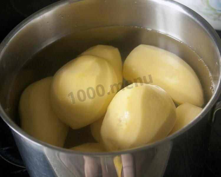 Сначала необходимо почистить картофель и отварить до готовности (для картофельного пюре). Из сваренного картофеля приготовить пюре с добавлением масла и соли и небольшим количеством воды. Пюре должно получится густым и хорошо держать форму. Картофельное пюре необходимо остудить.