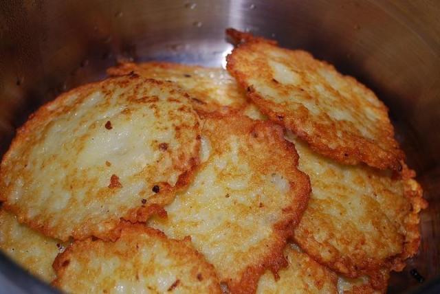 Картофель нужно очистить, и натереть на крупной терке. Добавить муку столько, чтобы тесто "схватилось", и было не слишко жидким. Соль добавить по вкусу. На сковороде разогреть сливочное масло. Затем нужно ложкой выкладывать картофельную массу и обжаривать с двух сторон, до образования корочки. Готовые оладьи можно подавать с майонезом, или подливкой из измельченных в блендере помидоров.