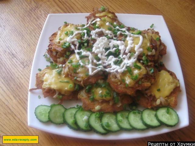 Подавая на стол, посыпаем картофляники свежей зеленью.
