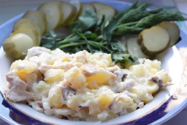 После истечения этого времени вытаскиваем, добавляем майонез, перец, еще немного подсаливаем. Все перемешиваем.