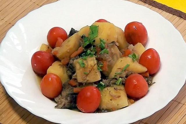 Картошка с морковью, репчатым луком и тушенкой в мультиварке