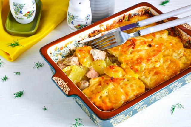 Также можно не выкладывать мясо и картофель слоями, а все перемешать и выложить в форму. Правда картофель в таком случае лучше нарезать не кружочками, а кубиками.