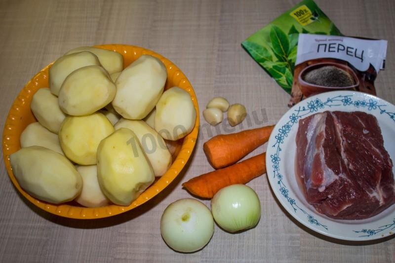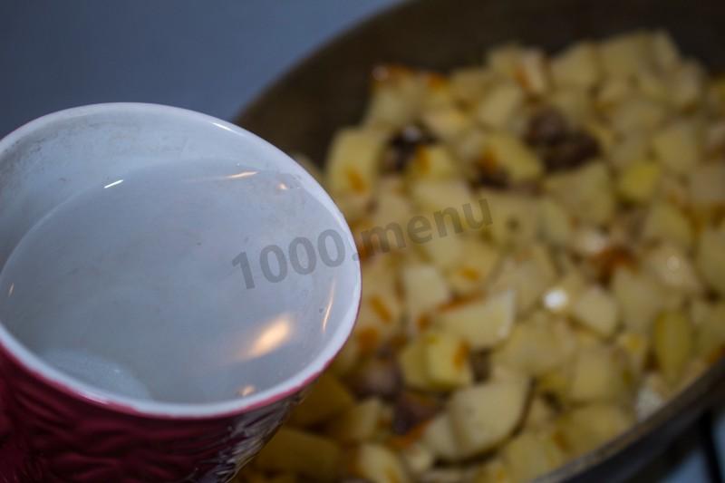 Добавляем примерно 0,5 л воды так, чтобы она чуть не доходила до верха картошки