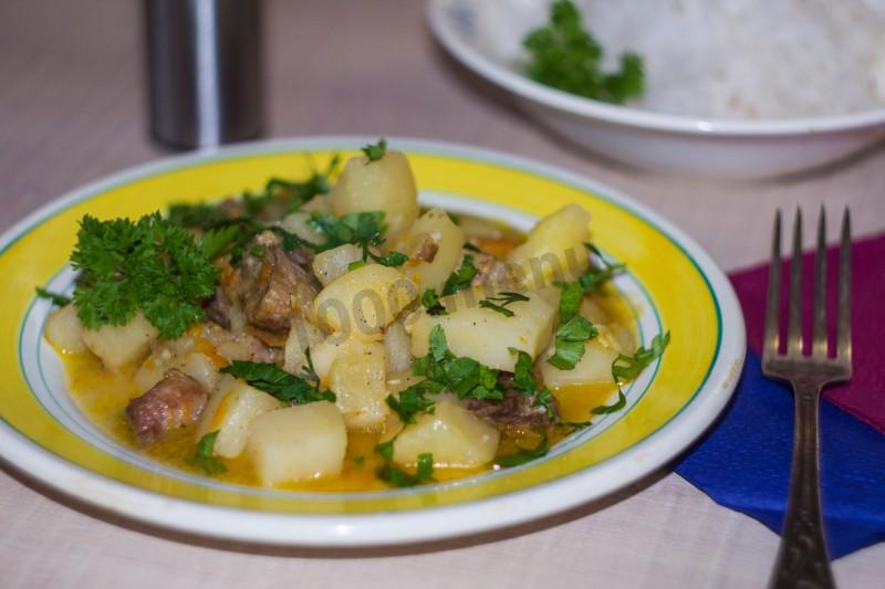Когда картошка закипит, добавляем лавровый лист, можно добавить несколько горошин душистого перца или еще какие-нибудь специи по вкусу. Тушим на слабом огне 25-40 минут до готовности картошки