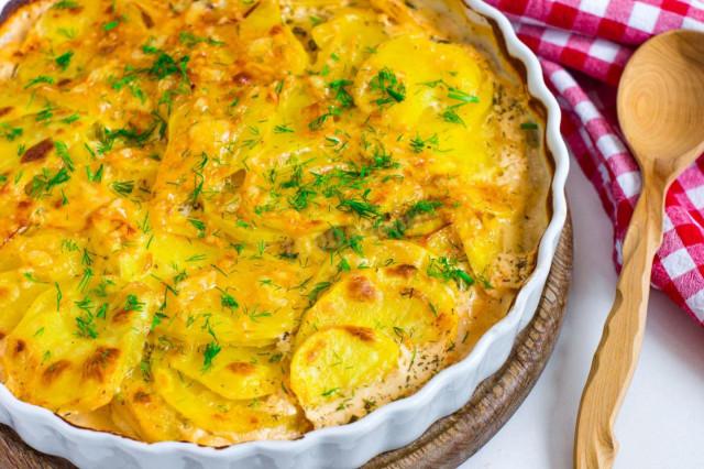 Как запечь картошку в сметане в духовке? Подготовьте продукты. Картофель выбирайте рассыпчатых сортов. Предварительно помойте и очистите его. Сметану возьмите натуральную, свежую, хорошего качества и высокой жирности. Сыр для этого блюда подойдет любой — твердый, полутвердый, мягкий, типа моцареллы. Главное, чтобы он был вкусным, качественным, без заменителей молочных жиров и хорошо плавился.