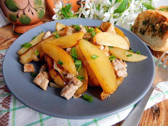 Картошка жареная с луком паприкой свининой без соуса