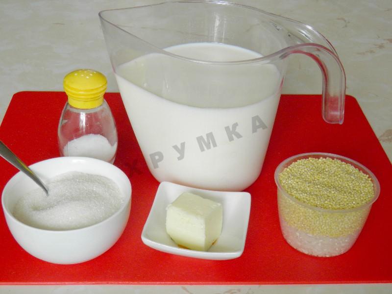 Необходимые ингредиенты. Для этой каши я всегда беру объем молока в пропорции 1:6 по отношению к крупе. Рис и пшено в соотношении 1:1