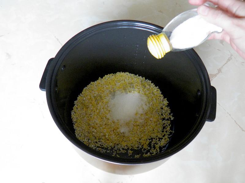 Закладываем в чашу мультварки крупу и добавляем сахарозаменитель.