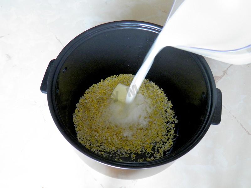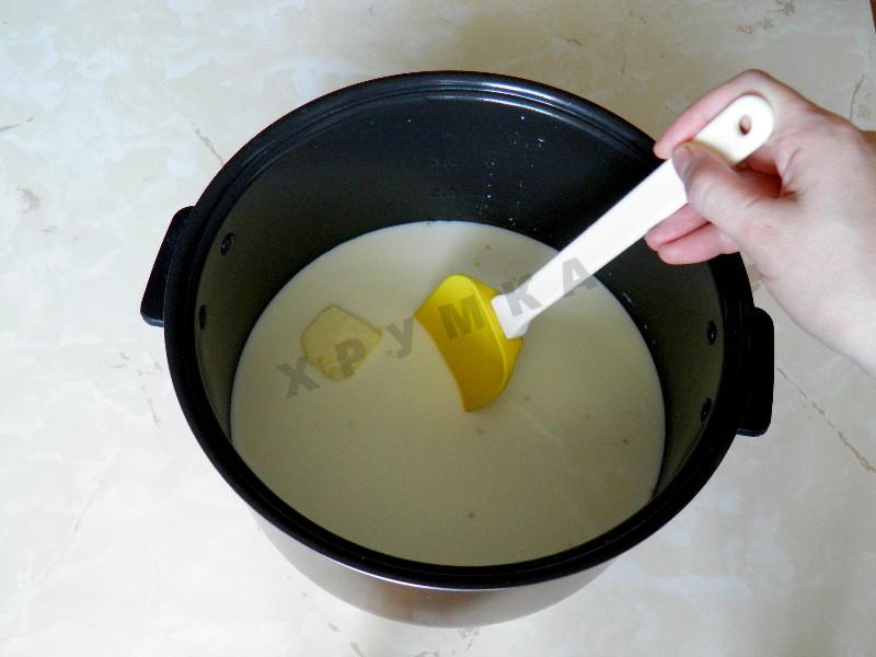 Хорошо все перемешиваем. И ставим вариться в режиме "Молочная каша" на 40 минут.