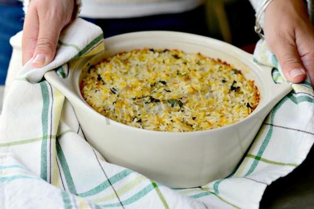 Немного перемешайте содержимое емкости, не нарушая слои. Поставьте в духовку на 190 градусов и примерно 40 минут. Каша готова, когда вся жидкость впиталась.