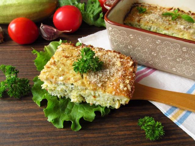Простое и полезное блюдо. Идеально для завтрака. Классическая запеканка из кабачков готовится очень просто. Это блюдо с легкостью приготовит даже начинающая хозяйка. Кроме вкусовых достоинств такая запеканка еще и полезная, так как кабачок - по-настоящему диетический овощ. Блюдо прекрасно подходит для завтрака, ведь входящие в его состав яйца и сыр - источники белка и энергии, которые так необходимы организму с утра. Подавать запеканку в теплом виде по желанию со сметаной или любым соусом по вкусу.