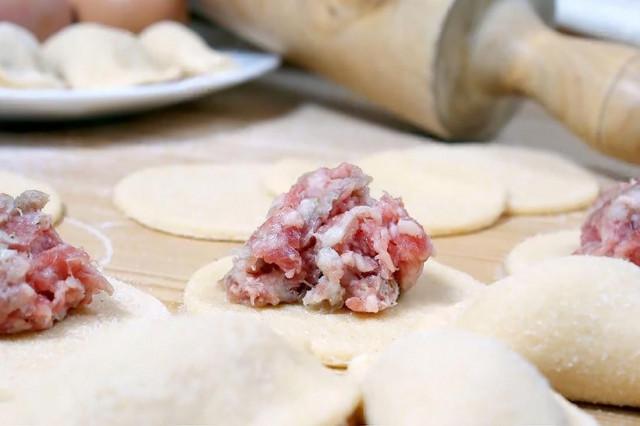 Рецептура классического фарша для пельменей включает в себя, как правило, два вида мяса - половину говядины и половину свинины. Такое соотношение мяса позволяет добиться баланса между чрезмерно сухой или, наоборот, слишком жирной начинкой для пельменей.
