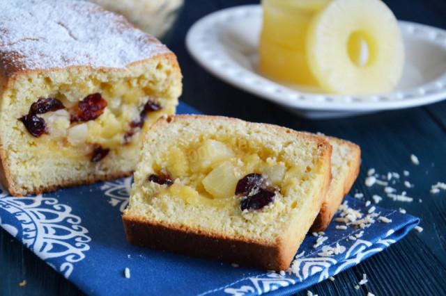 Кокосовый кекс с ананасом и вяленой клюквой