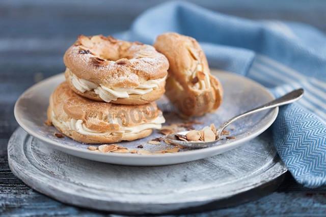 12. Остывшие кольца разрежьте на две половинки вдоль. Выдавите крем на нижнюю половинку по кругу, накройте второй половинкой кольца.