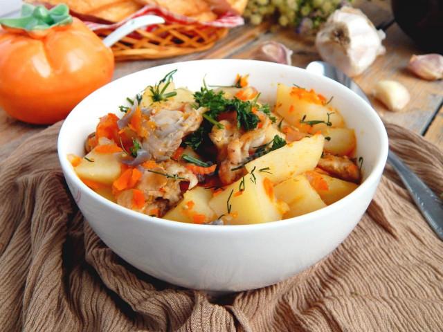 Затем добавляем приготовленные помидоры, перемешиваем и тушим еще на среднем огне около 10 минут. Затем огонь выключаем. Даем блюду постоять под крышкой около 20 минут и подаем к столу. Со свежим хлебом, зеленью и каким-либо соусом по желанию. Приятного аппетита!