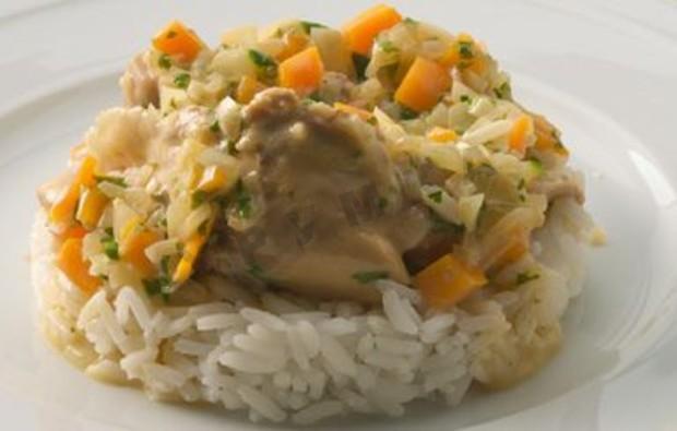 Через 20 мин добавить нарезанный болгарский перец, пошинкованную петрушку и снова перемешать. После звукового сигнала мультиварки об окончании работы, наш ароматный кролик готов. Подойдет любой гарнир. Но я люблю подавать с рисом. Приятного аппетита!