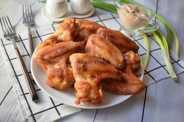 Такие крылья станут отличной закуской к пиву или подойдут для быстрого семейного ужина. К ним можно приготовить вкусный соус, например, чесночный. И не лишним будет подать к ним салат из свежих овощей.