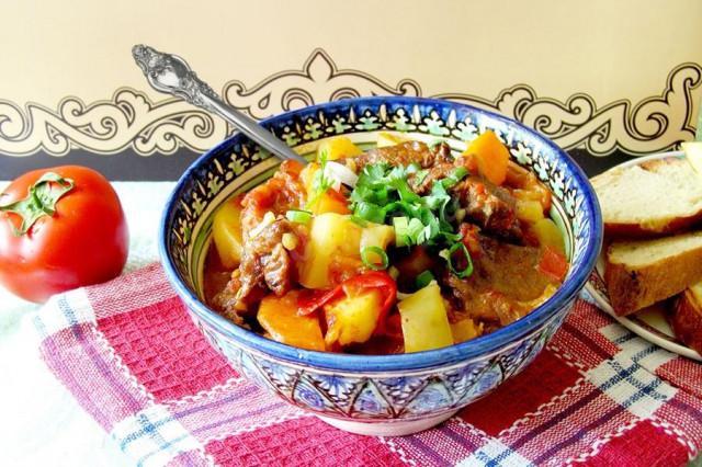 Это восточное блюдо покорит тебя своим вкусом и ароматом! Курдак - восточное блюдо, которое можно подавать как первое и как второе. Томатную пасту в рецепте смело можно заменить помидорами, а говядину - бараниной. Овощи и мясо сначала обжариваются, а затем тушатся в казане, блюдо получается с очень насыщенным и приятным вкусом.