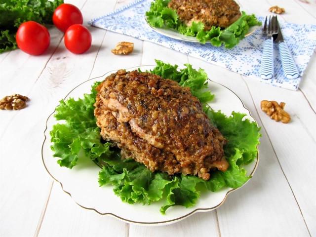 По-настоящему нежное филе с ореховым вкусом. При запекании куриной грудки грецкий орех выделяет масло, которое хорошо смягчает мясо и придает ему невероятный аромат. Такая сочная и нежная грудка несомненно будет хорошим вариантом и для праздничного стола.
