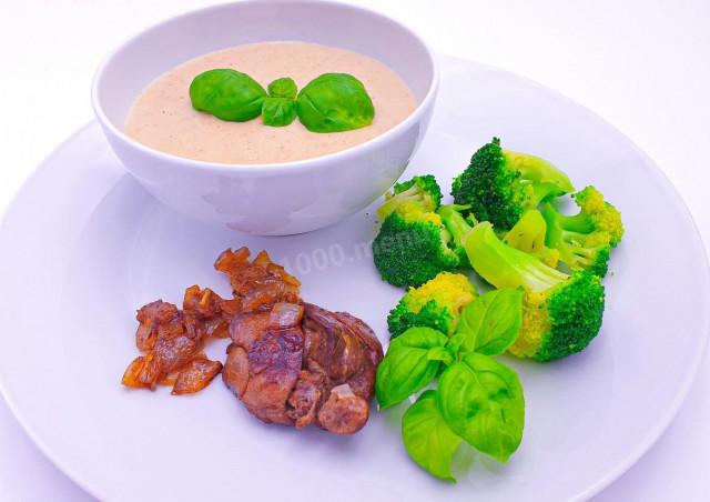 Куриная печень с брокколи и овсяно-протеиновым соусом
