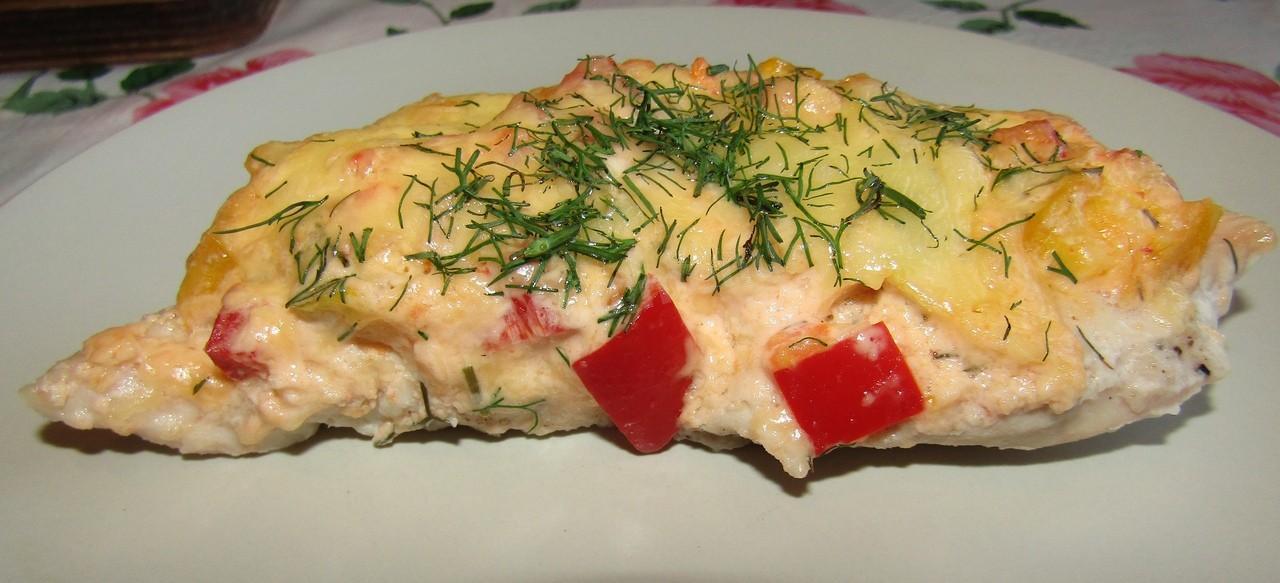 Куриное филе с перцем и зеленью в духовке