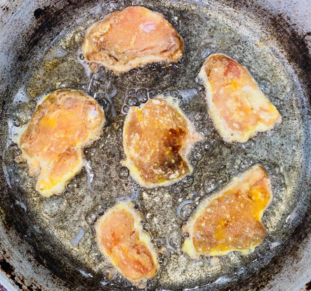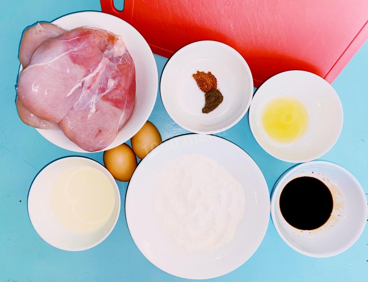 Куриное филе в кляре из соевого соуса с мукой и яйцом