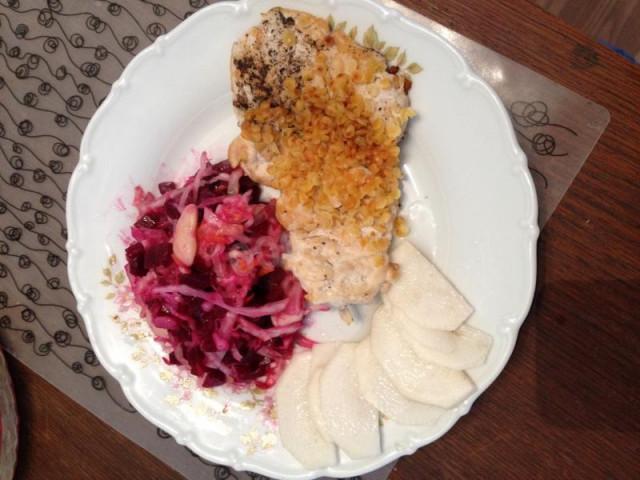 Оформляем тарелку, кладем наше филе, добавляем на свой вкус овощной гарнир и подаем на трапезу.