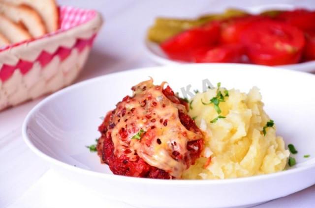 И посыпаем тертым сыром (выбирайте тот вид, что хорошо плавится), ставим форму с курицей в разогретую до 200 духовку на несколько минут, чтобы расплавился сыр. Подаем с картофельным пюре и овощами. Приятного аппетита!