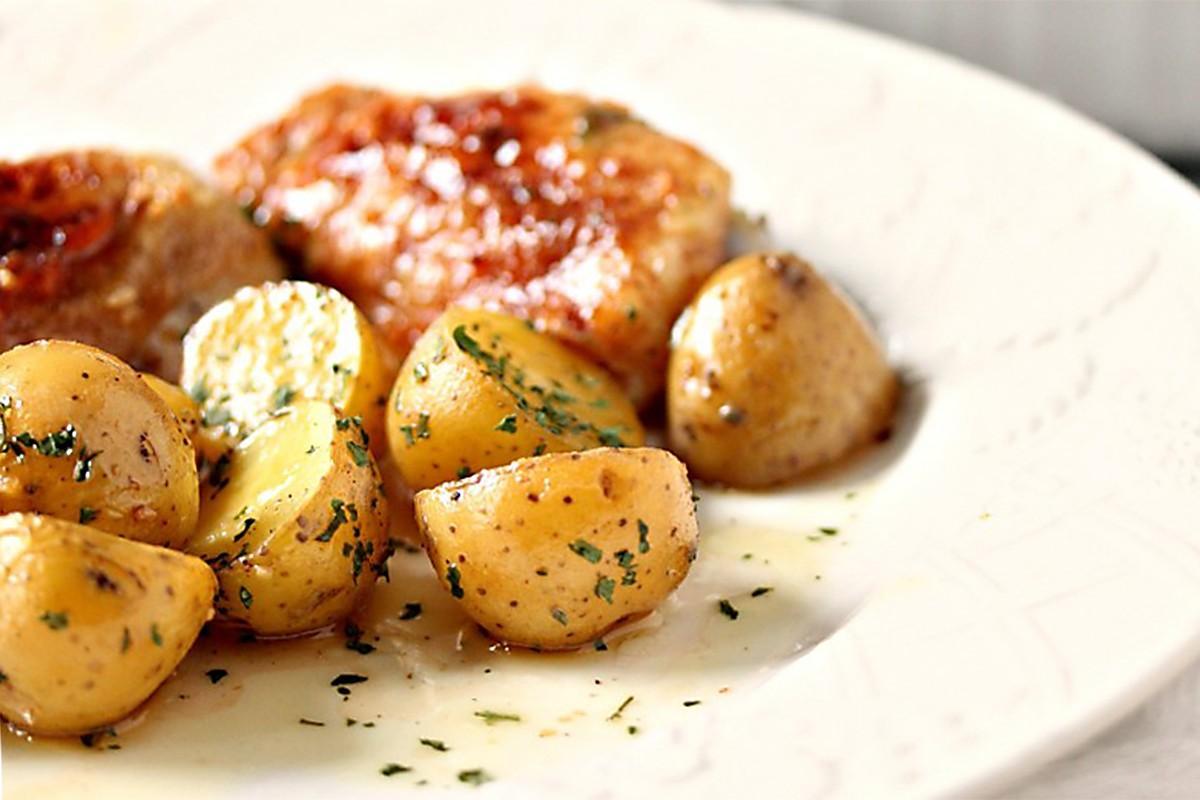 Куриные бедрышки в томатном соусе с картошкой в духовке