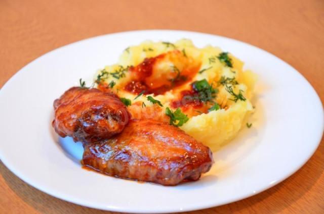 Куриные крылышки вымыть, высушить, разрезать по суставам и заправить солью, перцем по вкусу, также можно добавить любимые ваши травки. Подготовленные крылышки выкладываем на противень и запекаем в духовке 25 - 30 минут при 180 градусах до готовности. За 5 минут до готовности крылышек начинаем готовить соус. В глубокую сковороду наливаем подсолнечное масло и добавляем к нему кусочек сливочного. В разогретое масло добавляем чеснок и продолжаем жарить его до легкой золотинки. Далее поочередно добавляем соевый соус , томатную пасту и мед, все размешиваем до однородности. Достаем наши крылышки с духовки и отправляем в соус минут на 5, хорошенько их помешиваем, что бы они пропитались соусом. Через 5 минут выключаем огонь и подаем наши крылышки к столу.