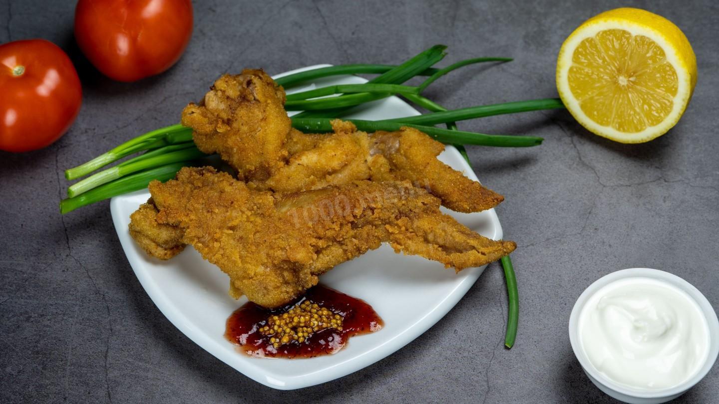 После панировки выкладывайте куриные крылья в сковороду и поливайте их сверху разогретым растительным маслом, чтобы они не получились сухими.