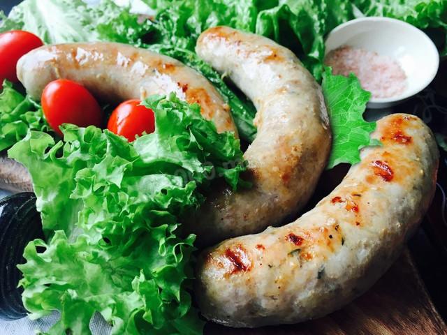 12. Растительное масло наливаем на сковороду, отправляем на огонь. Когда масло разогреется выкладываем в него купаты, жарим в течение 10 минут. Готовое блюдо имеет красивую золотистую корочку и чудесный аромат.