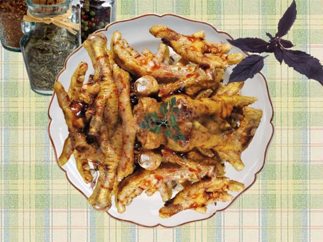 Замечательная закуска к пиву - жареные куриные лапки! Хочешь удивить гостей? Приготовь это необычное, но очень вкусное блюдо! Все будут приятно удивлены их сладко-кислым вкусом, с легкой остротой. Количество красного молотого перца регулируем сами, добавляем по своему вкусу.