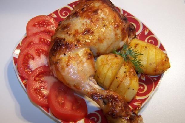 Всем вам милые хозяюшки известна ситуация, когда вечером прибегаешь домой и нужно быстренько готовить ужин на всё семейство. Я предлагаю вам приготовить для своих домочадцев куриные окорочка по-новому кулинарному рецепту, который называю «окорочка по-праздничному». Возьмите сырые куриные окорочка вымойте их в проточной воде, обсушите бумажным полотенцем. Я просто смешиваю майонез с домашней аджикой собственного приготовления в пропорции 1:1. Можно использовать и магазинную аджику, как-то я использовала просто кетчуп. (Хотя я сторонник здорового питания – типа знаю, что ем). Этой смесью тщательно обмазываю каждый окорочек отдельно. Даю им пропитаться. Я, как правило, планирую заранее, чем буду кормить свое семейство, поэтому окорочка, так сказать, мариную заблаговременно- с вечера или утром. Полежав в таком «соусе» мясо курицы получается очень ароматным и необыкновенно нежным. Вечером, после работы, вам остается лишь поставить промариновавшиеся куриные окорочка в духовку на 40 минут. В процессе запекания куриные окорочка, благодаря «майонезно-аджичному» соусу, приобретают золотистую корочку. За 40 минут, что запекаются окорочка, вам остается лишь придумать гарнир. Приятного аппетита.