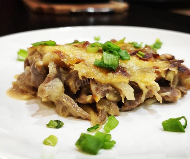 Куриные желудочки под сырной шапкой