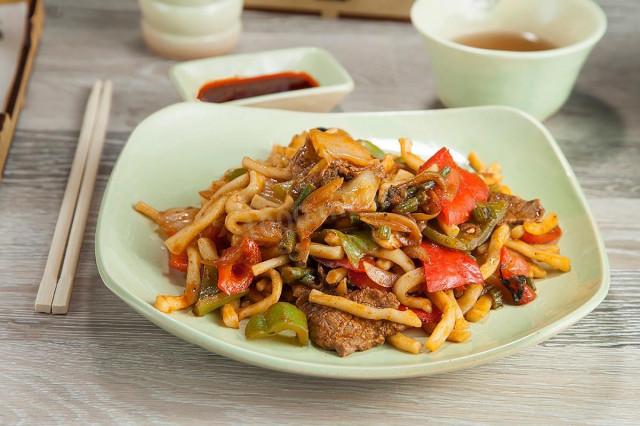 Готовь уйгурское блюдо! Невероятно вкусно, ароматно и сытно! Лагман цомян отличается от обычного тем, что мясо перед приготовлением нужно замариновать в соевом соусе. Также в этом варианте лагмана нет подливы, а все ингредиенты быстро обжариваются на сильном огне в казане или сковороде вок (именно обжариваются, а не тушатся!) Получается вкусно, а в обязательных ингредиентах: мясо, лапша, соевый соус, помидоры, болгарский перец, лук и чеснок. При этом дополнительные ингредиенты можно добавить любые - чем больше овощей, тем лучше.