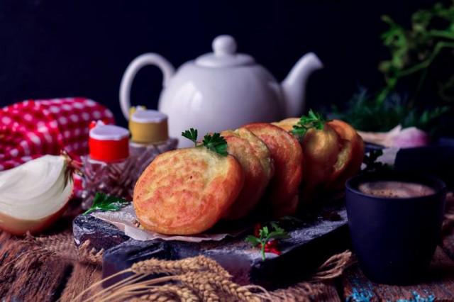 3. Сковородку отправляем на огонь, наливаем растительное масло. С помощью столовой ложки отсаживаем на разогретую сковороду небольшие оладушки, по центру каждого размещаем по котлетке, покрываем небольшим количеством теста. Жарим на слабом огне по 5 минут с каждой стороны (если сделать огонь больше, тесто сгорит, а фарш останется недопеченным).